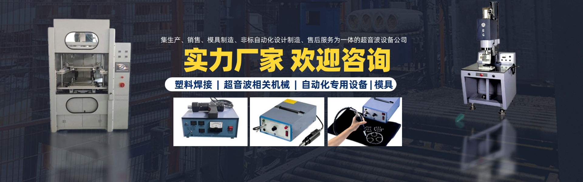 廈門萇榮機械設備有限公司是長榮超音波集團在福建設立的公司,我們主要供應臺灣長榮系列超聲波機器。 長榮超音波集團成立于1991年,麾下的兩個生產基地,分別建立在臺灣和上海,公司主要專業(yè)設計指導各種塑料焊接、超音波相關機械、模具及以本業(yè)為核心結束各類自動化專用設備。 廈門萇榮機械設備有限公司是集生產、銷售、模具制造、非標自動化設計制造、售后服務為一體的超音波設備福建公司,集團公司及本公司成立二十余年來,設備技術日趨完善,并通過ISO-900認證,在超聲波行業(yè)有良好的信譽。 目前我公司產品系列有: 1)超聲波塑膠熔接設備及模具; 2)高精度自動追頻超聲波焊接機; 3)超聲波縫制機系列; 4)超音波清洗系列; 5)熱板式焊接機系列及模具; 6)汽車零部件生產設備; 7)各種非標專用機設備設計與制造。
